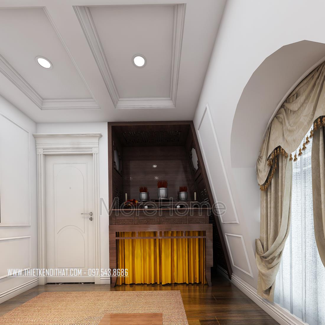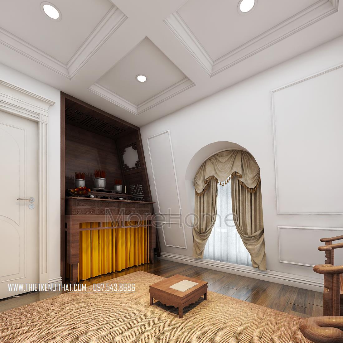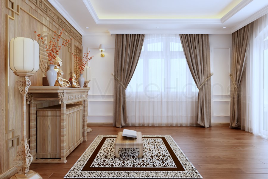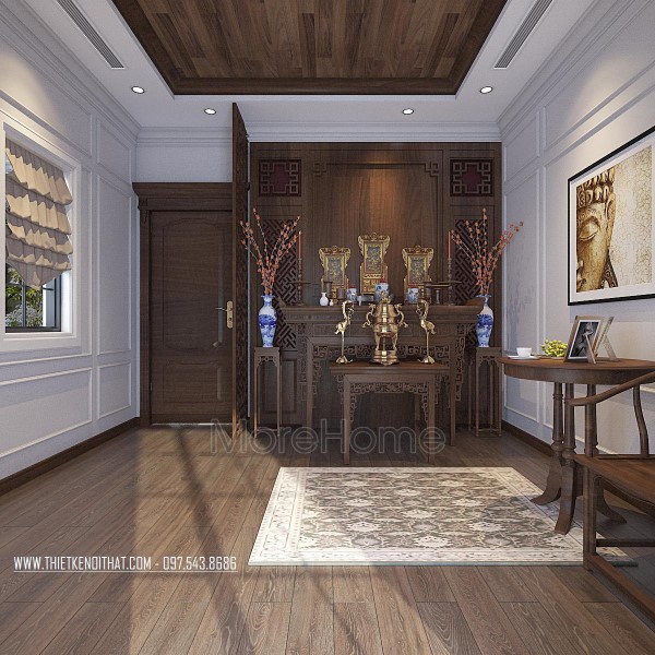 Đây là những mẫu phòng thờ đẹp cho nhà biệt thự của Morehome. Việc thờ cúng tổ tiên là nét đẹp tâm linh từ xa xưa ông cha ta truyền lại, cho đến tận bây giờ nét đẹp ấy chưa bao giờ bị phai mờ. Để tỏ lòng thành kính, biết ơn tổ tiên, nhiều khách hàng đã tìm mua bàn thờ gỗ với đa dạng mẫu mã, họa tiết, có thiết kế nhẹ nhàng, gọn gàng hiện đại nhưng vẫn đậm nét tâm linh để là trang hoàng cho không gian thờ cúng tại gia đình.