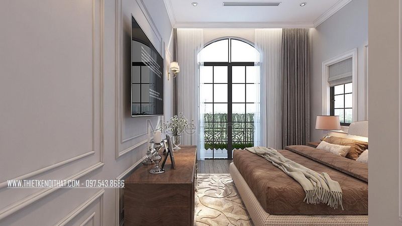 Nội thất phòng ngủ Master chung cư hiện đại với gam màu trắng thanh thoát không lo lắng bị lỗi thời